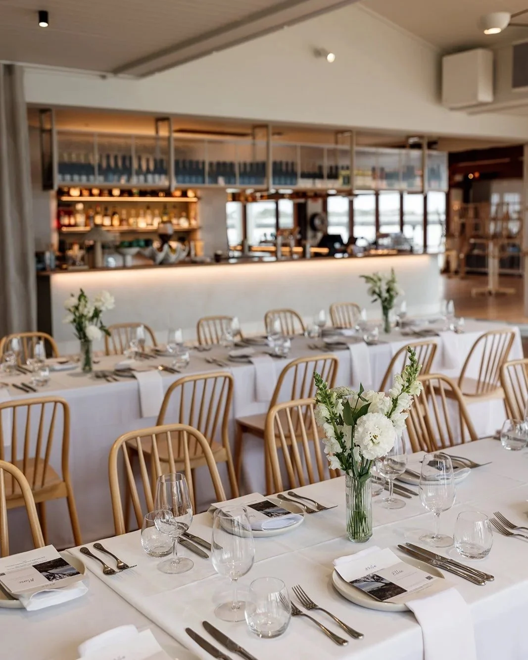 The room is fitted with bi-fold doors on the northern and eastern aspects, which open the space onto the water and the deck. A whole venue wedding can accommodate up to 130 guests for a seated function or 150 guests for a canapé wedding. For events with exclusive use of the venue, the Mulloway room can also be utilised as an additional space a private area for the bridal party.